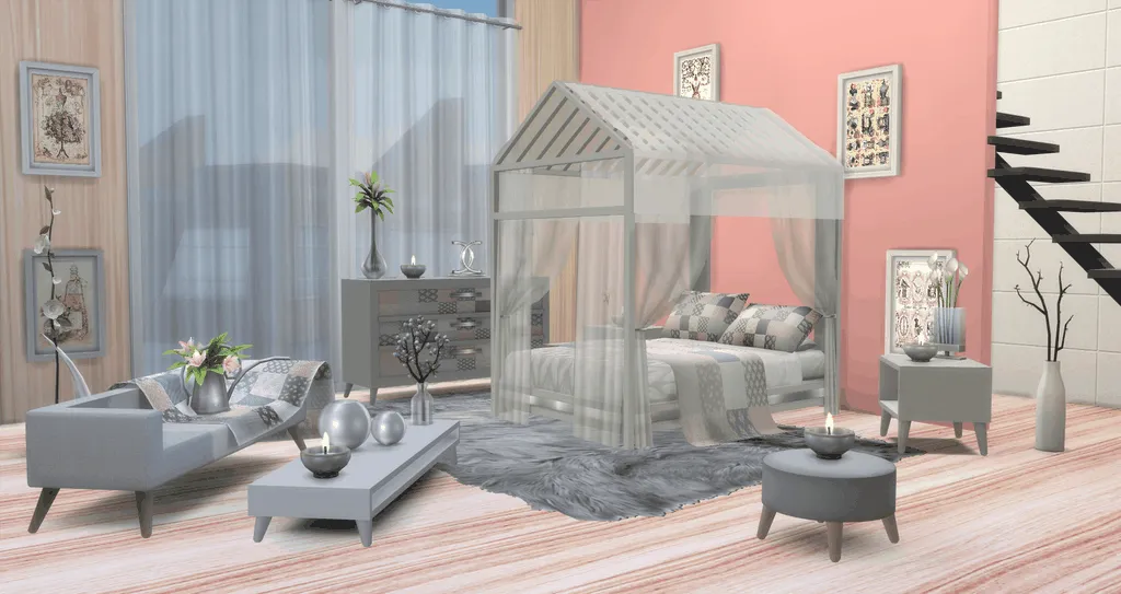 Voici pour vos Sims 4 une nouvelle chambre. Modernité. confort . sont les maitres mots de ce set.
