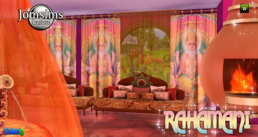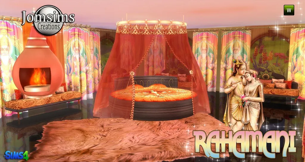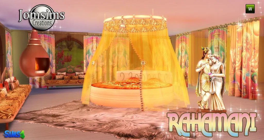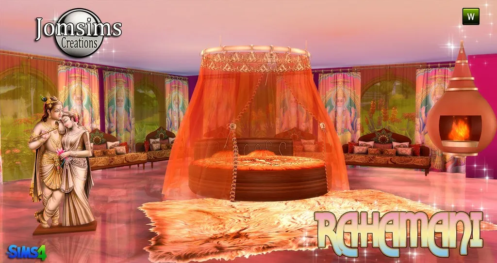 Voici, RAHAMANI. lit rond, rideaux de lit. rideaux pour les murs. rideaux transparant pour les murs. Sofa , avec coussins, cheminée suspendue. Sculpture..Animation du lit , fausser. Car c'est un lit rond.