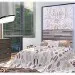 Couverture de lit deco. Coussins. Partie 2 du lit. peintures. table de lit. lampe de table métal. lampe de sol métal. Sofa.Tapis.